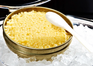 Albino Sterlet Sturgeon Caviar is among the rarest forms of Sterlet available. The albino genetic variation produces its distinctive golden pearls, making it both visually stunning and highly sought after by chefs and collectors of fine caviar. While maintaining the classic elegance of Sterlet caviar, the albino variety offers an even more luxurious presentation that elevates any gourmet experience.
