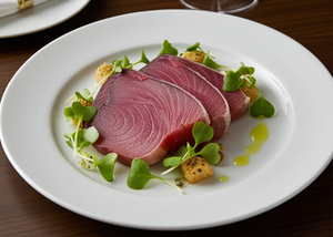 Tataki: Lightly seared exterior with a cool, refined center.